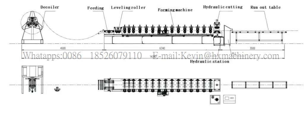 Steel Coil → Decoiler → Leveling → Punching → Roll Forming → Cutting → Output Table